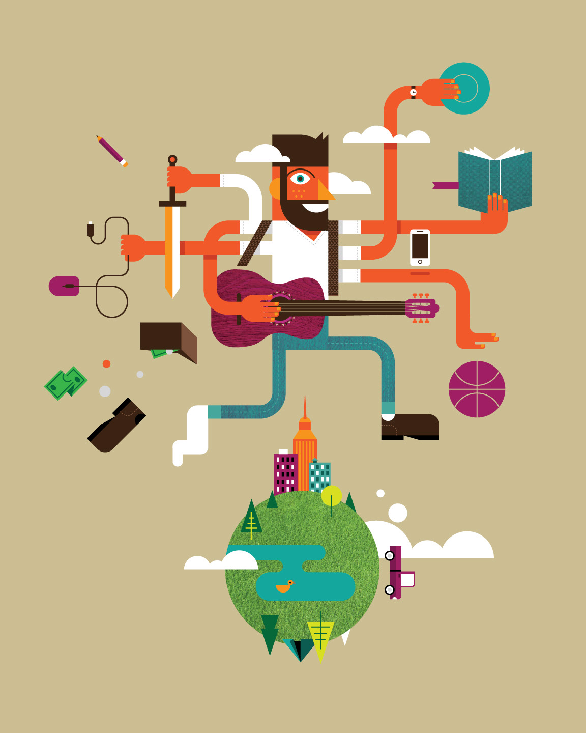 The lives we juggle. Vector Illustration with textures embedded.